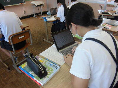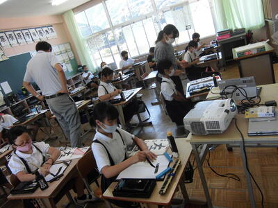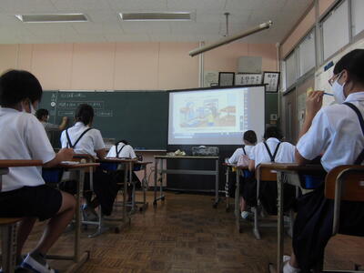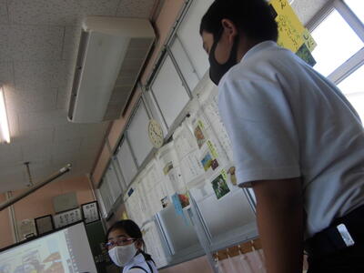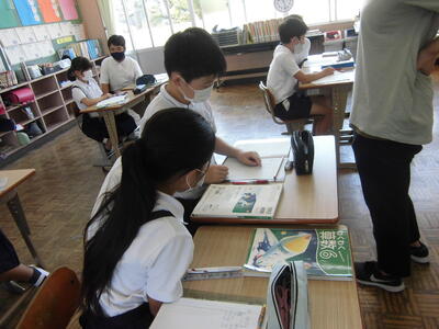 今日は、天草市教育委員会の先生、御所浦中学校の先生、東京からの学生さん(キャラバン隊)が来校されました。2時間目の5年生の国語の授業では、タブレット端末に自分の考えを残しながら、話し合いが行われました。児童は、緊張しながらも話し合いが少しずつ活発になっていく姿が見られました。緊張の中での授業、これも大切な経験です。