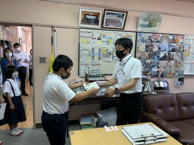 本日、地域の方からバナナをいただきました。かわいらしいバナナを前に、1年生の子どもたちは大喜びでした。バナナは「お店で買うもの」と思っていた児童にとっては、とても新鮮な光景だったことでしょう。私もいただきましたが、甘くてとてもおいしいバナナでした。