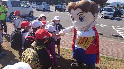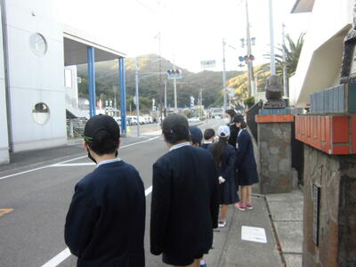 朝は6年生が甲斐先生と一緒にあいさつ運動に立ってくれています・・・。