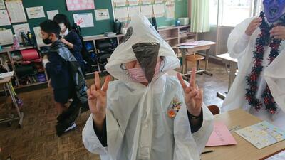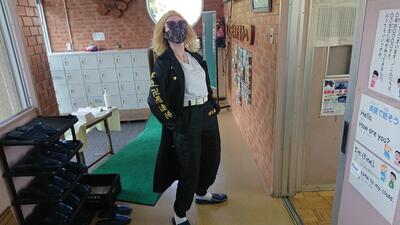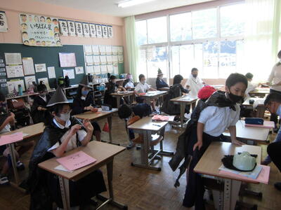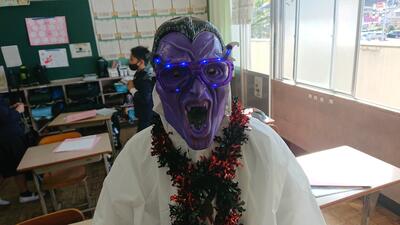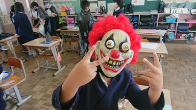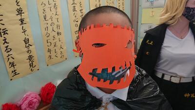 今日の授業のために、マイキーは仮装をしてきてくれました・・・。
