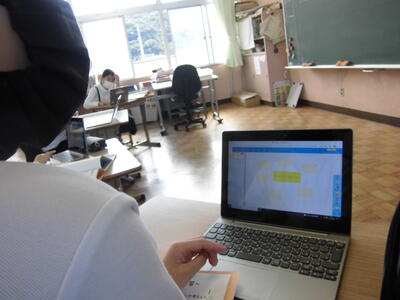 5校時、6年生は、修学旅行の振り返りで、タブレットの発表ノート機能を使う子どもたち・・・。