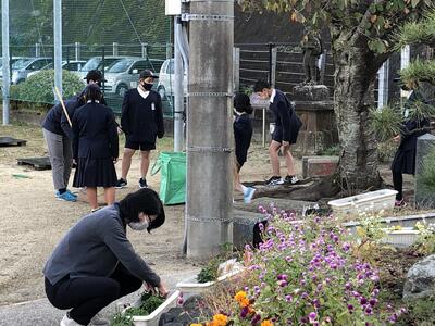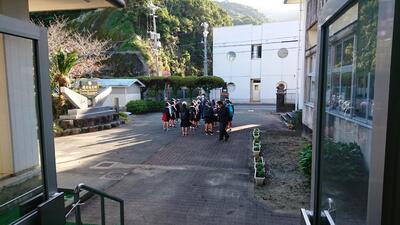 7月23日(水)、御所浦小中合同でボランティア活動を実施しました。中学校の生徒さん方がリードしながら、自分たちの地区で清掃活動に取り組みました。お菓子の袋やペットボトルなどのゴミを拾い、御所浦の環境をさらにきれいにしてくれた子どもたちです。ちなみに、写真の奥に見えるのは八代海です。遠くには九州山地も、うっすらと姿を見せていました。美しい景色と捨てられたゴミの対照が、なんとも印象的でした。
