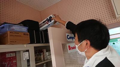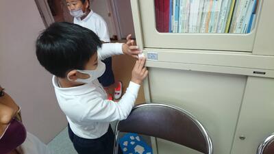 なんと熊野先生は、棚の上の荷物を取るときに、ドアの上越しに取りました・・・。
