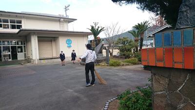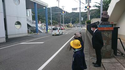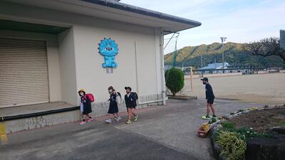 今朝も朝からボランティア掃除、あいさつ運動にと日常と変わらない御所浦小の一日が始まりました・・・。が、しかし・・・。登校してくる児童が次々に、「校長先生は、いらっしゃらないんですか?」と不思議そうに、そしてさみしそうに言うのです。