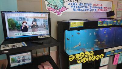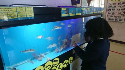 朝から子どもたちに囲まれる「ごしょっこ水族館」。今日も「わあ、きれいになってる!」と声をあげながら、1・2年生の子どもたちが水槽をのぞき込んでいました。昨日の放課後、保護者の方が掃除と海水の入れ替えをしてくださったおかげです。水槽の中では、鯛の稚魚がすくすくと成長しています。