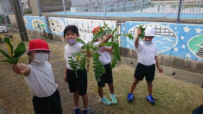 本日、地域の方からバナナをいただきました。かわいらしいバナナを前に、1年生の子どもたちは大喜びでした。バナナは「お店で買うもの」と思っていた児童にとっては、とても新鮮な光景だったことでしょう。私もいただきましたが、甘くてとてもおいしいバナナでした。