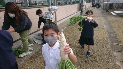 5年生が米作りでお世話になっている山崎様のご厚意により、1年生がみかん狩りを体験させていただきました。収穫したばかりの新鮮なみかんの香りは、子どもたちの心に深く残ったことでしょう。貴重な経験をさせていただき、誠にありがとうございました。