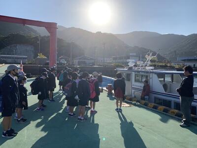 4年生は、勇志国際高校近くの入り江で伝馬船の体験を行いました。地域の方々のご協力をいただきながら、全員が艪をこいで舟を進める貴重な経験をしました。風が吹く中での操縦は容易ではなく、悪戦苦闘しながらも和船ならではの操船を体感することができました。 ※伝馬船(てんません)とは、日本で使われた木造の小型和船で、本船と岸の間で荷物や人を運ぶために用いられた船です。