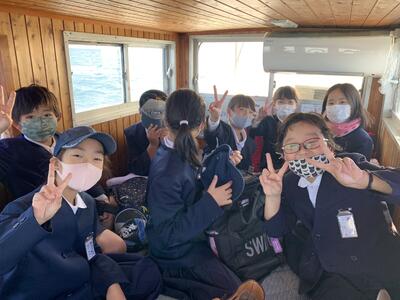 本日、五和町二江にて、「イルカとの共生事業」という天草市の事業が行われました。これは本年度より、4年生を対象に開始された取り組みです。 初めて野生のイルカを目にした子どもたちは、「わあー!」「おったー!」と感動の声をあげていました。 ふるさと天草の素晴らしさを、きっと実感できたことでしょう。