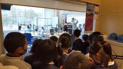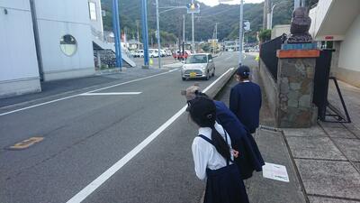 あいさつ運動をしていると、ごしょっ子水族館の周りが何やらざわざわしはじました。