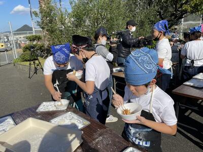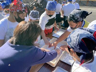 4月19日(土)に植えた餅米を使い、もちつきを行いました。お世話になった山崎様に見守られながら、5年生は感謝の気持ちを込めて楽しくもちつきを体験しました。つきたてのお餅に砂糖醤油をつけて、子どもたちはおいしそうに頬張っていました。こうした貴重な体験ができることは、子どもたちにとって大きな幸せです。