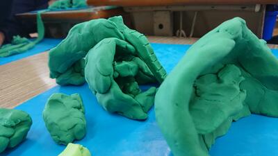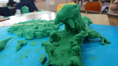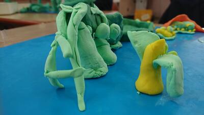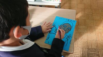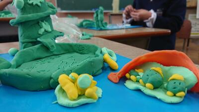 そして6校時、6年生がカリメロ、いやイルミネーションでライトアップされるキョウリュウのタマゴに蛍光塗料で彩色しました。