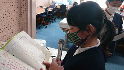 今日から給食時間に2学期のふりかえりを各学年代表が発表します・・・。
