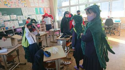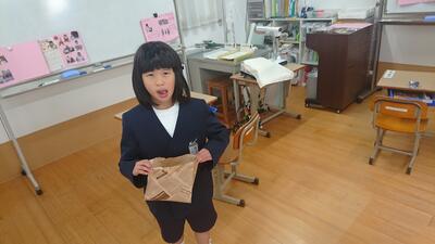 「校長先生、びっくり箱開けてください!」というので開けてみると・・・。