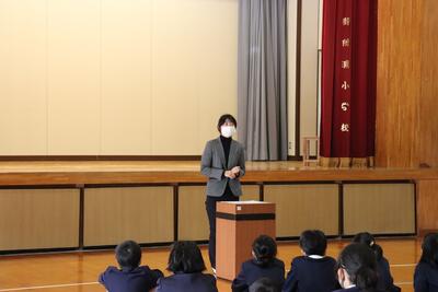 「そして、今から話すことは校長先生の悩みです。ちょっと聞いてください。あいさつに関する2つの悩みです。