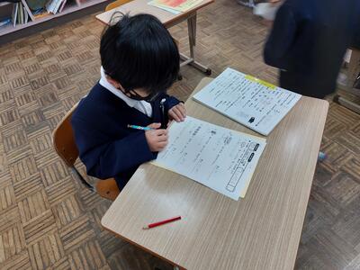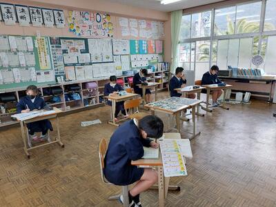 すべての学年で、同じシステムを整えて、黙々とプリント学習に取り組みます。