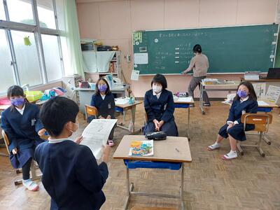 5.6時間目、本校4年生が水俣第二小学校とオンライン交流会を行いました。自己紹介やクイズを通して、楽しいひとときを過ごすことができました。水俣から水の供給を受けている御所浦にとって、今回の交流はたいへん感慨深く、社会科の学習にもつながる貴重な機会となりました。今後のさらなる展開が楽しみです。水俣第二小学校の皆様には、温かいご理解とご協力をいただき、心より感謝申し上げます。