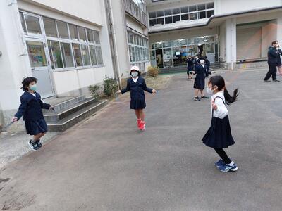 なわとび、あいさつ運動、朝から元気いっぱいです。