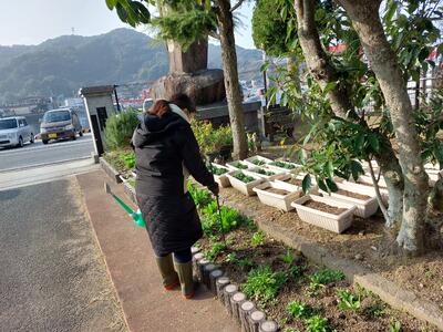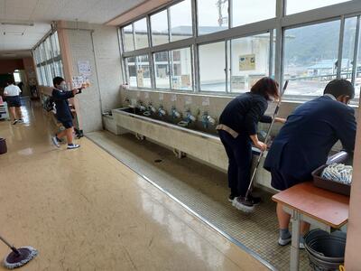 7月23日(水)、御所浦小中合同でボランティア活動を実施しました。中学校の生徒さん方がリードしながら、自分たちの地区で清掃活動に取り組みました。お菓子の袋やペットボトルなどのゴミを拾い、御所浦の環境をさらにきれいにしてくれた子どもたちです。ちなみに、写真の奥に見えるのは八代海です。遠くには九州山地も、うっすらと姿を見せていました。美しい景色と捨てられたゴミの対照が、なんとも印象的でした。
