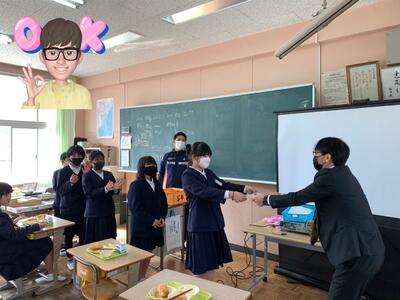アフターの貴重な写真。休み時間になってうろうろしていたら、1年教室でステキなシーンに遭遇しました。