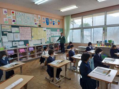 教室に戻ってきた加奈子先生に、「ひとみ先生との授業、楽しかったです!」と一気に報告するかわいい1年生・・・。