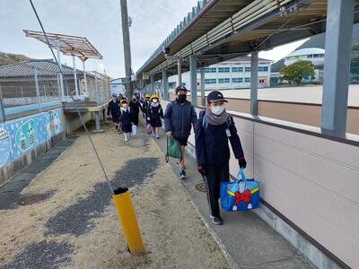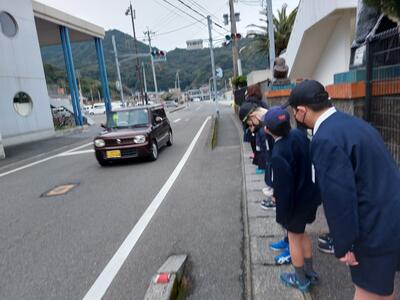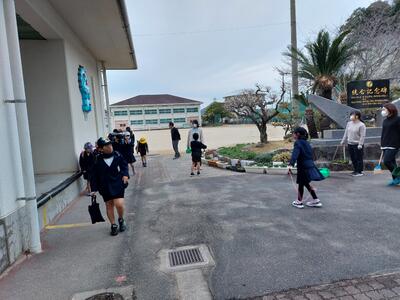 子どもたちの元気なあいさつで、御所浦小の一日が始まりました。