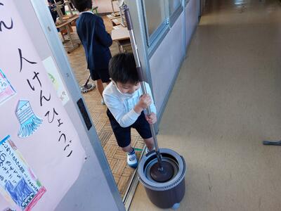 何気にすばらしいシーンです。中学年の発達段階って「え~ぼくが掃除機だよ」とお互い主張して肝心の掃除時間にタイムロスが生まれます。ですがそうならない、その穏やかな処理が、御所っ子のよさです。私はこれは生きる武器になると思います。