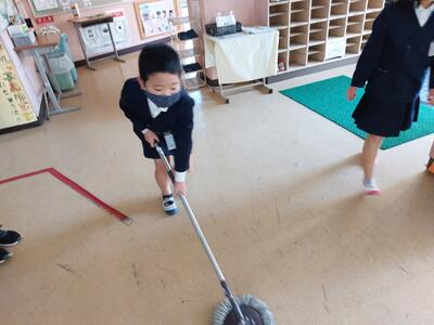 掃除時間、校長室掃除はひとりが掃除機、一人がソファー等の吹き上げです。ひとりめの子が「掃除機です」と一旦校長室に入室したあと、掃除機を取りに行きました。ふたりめの子が拭き上げかなと思い、校長室に来たときに「あれ?ぞうきんは?」と尋ねると、「掃除機です」と言います。ひとりめの子もそう言って掃除機を取りに行ったことを伝えると、「じゃ、雑巾取って来ます」と教室に雑巾を取りに行きました。