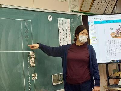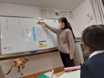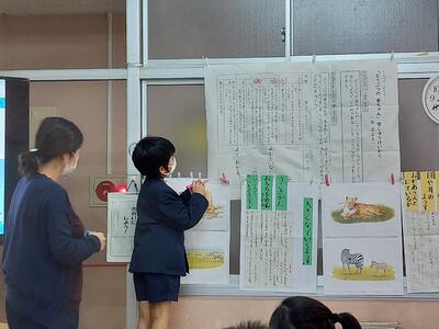 子どもたちは、カンガルーの赤ちゃんの育ちのようすを読み取り、前時までに学習したライオンやしまうまの赤ちゃんと比較していました。