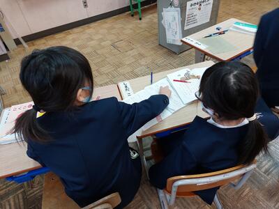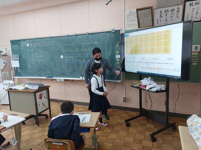 しかもディスプレイに映し出された係の子の解答発表を見ながら答え合わせを進めます。