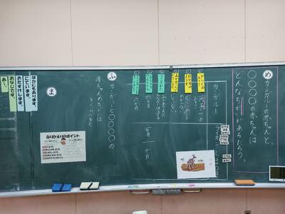 御所浦小の先生たちは、こういう大切な話の骨子を、黒板に書き留めておいて、もう一度子どもたちと確認をします。