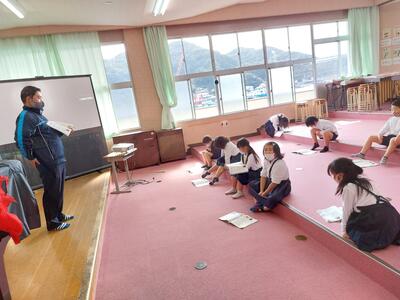 本日、東京都の明星大学の学生さん8名が、本校の教育活動の視察訪問に来校されました。皆さんは、へき地教育について自主的に学習をされている方々で、高い志を持たれています。歓迎会では、はつらつとした学生さんの姿に、子どもたちの目も輝いていました。3日間という短い期間ですが、御所浦小の子どもたちとの交流を満喫してほしいと思います。