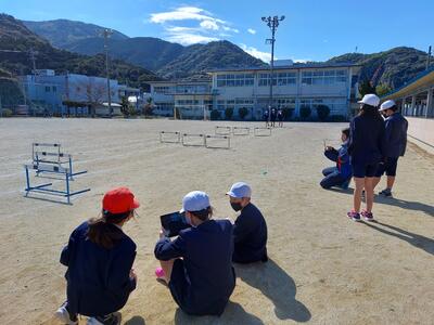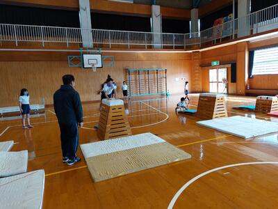 友だちがどうやったら跳べるか考えることも体育の学習ですね・・・。