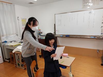 石阪先生は整えます。子どもたちが自分たちで考え、学習を進められるように、システムを整えるのが上手です。すべてにシステムを整えているのではなく、結構アドリブで対応できる余地を残しているのもとてもいいです。1年生は、入学して9ヶ月、ここまで成長できるのか、というくらいの成長を見せてくれました。国語の学習の最初に「コクオビタイム」といって、ことぷり(言葉のプリント)に取り組みます。