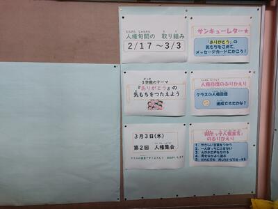 人権集会を行いました。人権主任の先生方からは、「自分のよいところに目を向けてみよう」というお話がありました。その後、縦割り班に分かれ、子どもたちは、友達のよいところをハート型の台紙に書き込んでいたものを手に紹介しました。誰のことが書かれているのか分からない班の友達は、発表を聞きながらドキドキしています。名前が明らかになると、紹介された子は嬉しそうに言葉を交わし、温かな雰囲気が広がりました。子どもたちが体育館を後にしたあとも、会場にはいつもより柔らかく、温かい空気が残っていました。