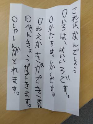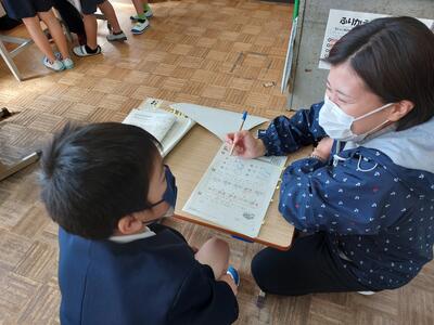 終わった子はプリントの裏に「カタカナチャレンジ」と指示を出し、待ち時間を作らないシステムもすばらしいです。