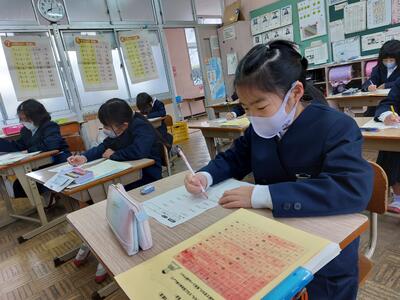 これもここまで継続的に積み重ねてきたので、1年生は驚くべき速さでA4プリントを終わらせます。