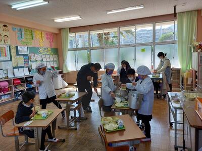 会議の間に、給食当番のようすや給食時間の週目標の反省のようすや掃除のようすを撮影・・・。