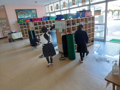 コンテナ室前の消毒と問診は給食当番の衛生はコロナ前から実施中・・・。