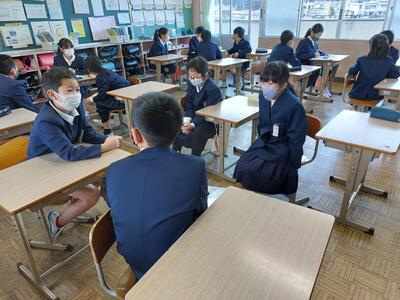 5.6時間目、本校4年生が水俣第二小学校とオンライン交流会を行いました。自己紹介やクイズを通して、楽しいひとときを過ごすことができました。水俣から水の供給を受けている御所浦にとって、今回の交流はたいへん感慨深く、社会科の学習にもつながる貴重な機会となりました。今後のさらなる展開が楽しみです。水俣第二小学校の皆様には、温かいご理解とご協力をいただき、心より感謝申し上げます。