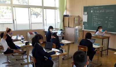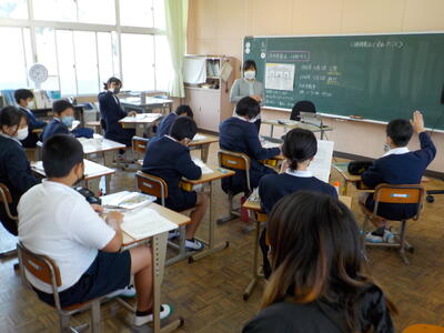 5年生・・・。外国語。元気よくコミュニケーションを図る姿がありました。