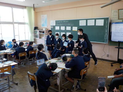 自分たちで、自分たちの班のめあてを話し合うことって大切ですね。自分の意見を大切にして、友だちの意見も大切にする。それが御所浦小を大切にする心につながるんですね。