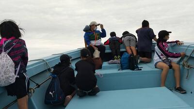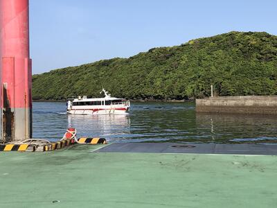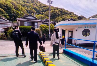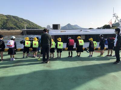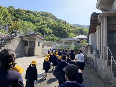 今日は北地区です。先生方は船に乗って家庭訪問に移動です。「いいなあ」と思って見送ったところでした。