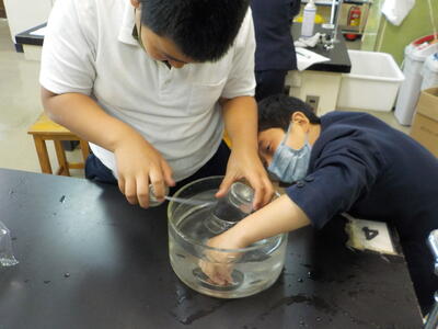 子どもたちはとてもよく「御所っ子水族館」で魚を観察しています。