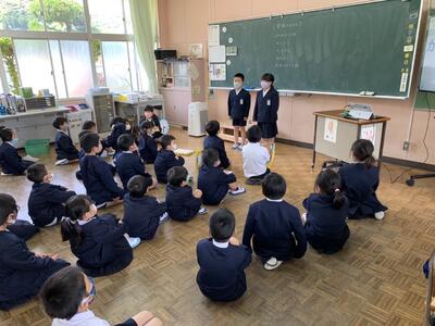 1年生も堂々と自己紹介できていました。6年生のサポートをGOOD!!