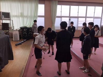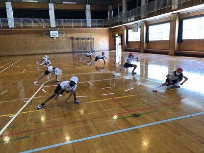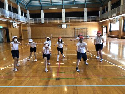 別の時間の体育館。5、6年生が運動会に向けて表現を練習していました。