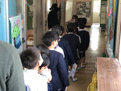 1年生が音楽室に移動します。誰一人しゃべらず、廊下に並んでいました。これはすごいことです。