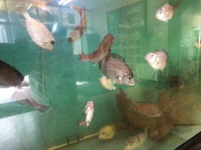 朝から子どもたちに囲まれる「ごしょっこ水族館」。今日も「わあ、きれいになってる!」と声をあげながら、1・2年生の子どもたちが水槽をのぞき込んでいました。昨日の放課後、保護者の方が掃除と海水の入れ替えをしてくださったおかげです。水槽の中では、鯛の稚魚がすくすくと成長しています。