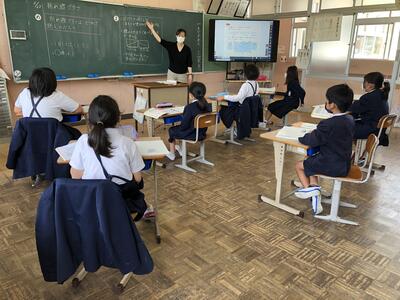 今日は、天草市教育委員会の先生、御所浦中学校の先生、東京からの学生さん(キャラバン隊)が来校されました。2時間目の5年生の国語の授業では、タブレット端末に自分の考えを残しながら、話し合いが行われました。児童は、緊張しながらも話し合いが少しずつ活発になっていく姿が見られました。緊張の中での授業、これも大切な経験です。
