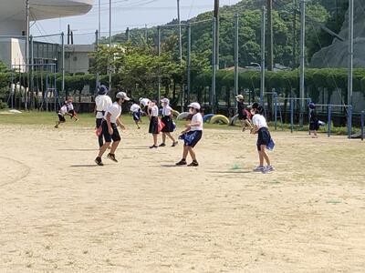 今日は、体育委員会企画による全校遊び(全校鬼ごっこ)でした。梅雨に入り室内で過ごすことが増えていましたが、今日は、好天に恵まれ運動場に活気が戻っていました。子どもたちが、汗びっしょりかきながら走り回る姿はいいですね。※しかし、今日は熱中症指数が上がり、途中に休憩・給水を入れての全校遊びとなりました。